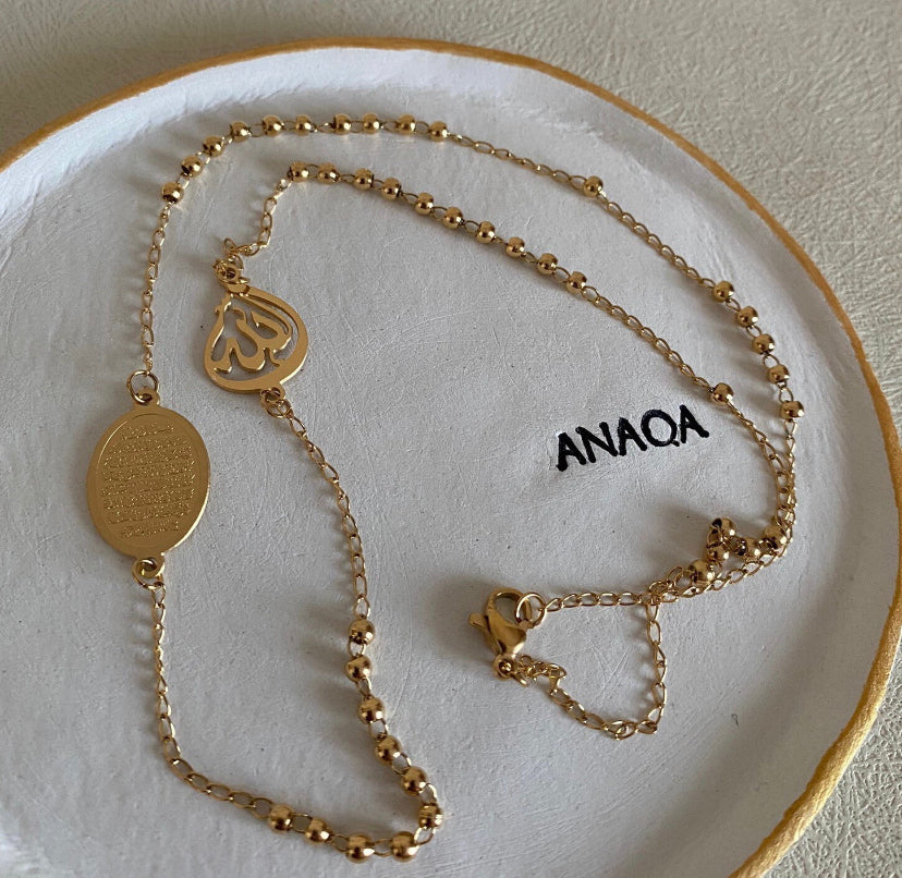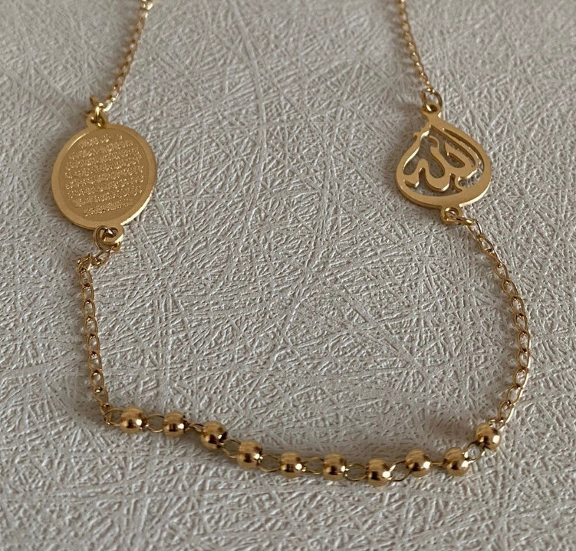 This necklace is beautifully engraved with the Ayatul Kursi verse, making it a minimal elegant jewellery piece with a powerful meaning behind its concept.