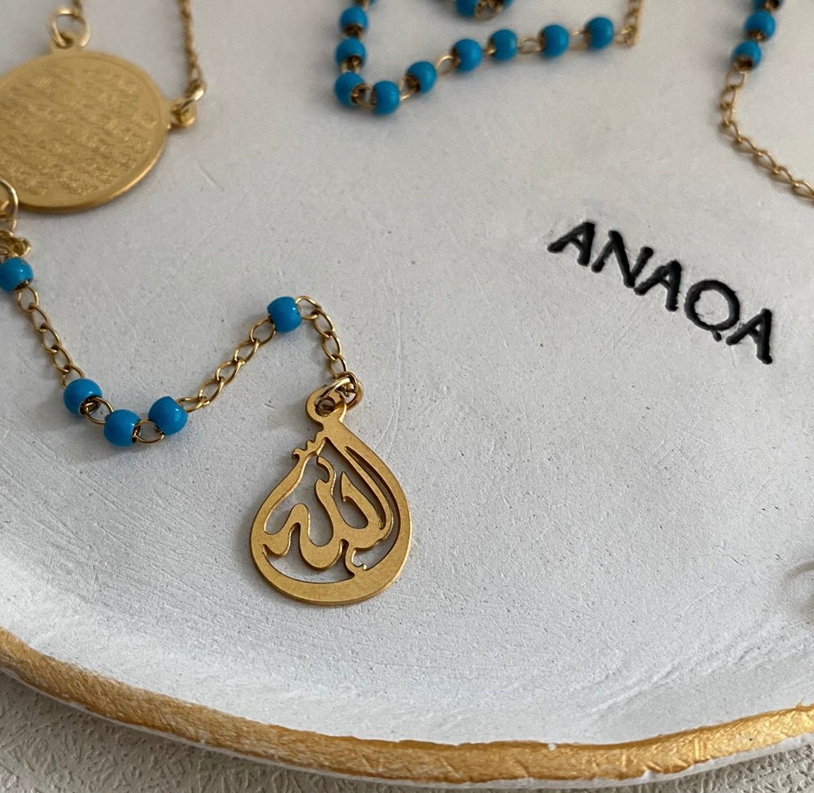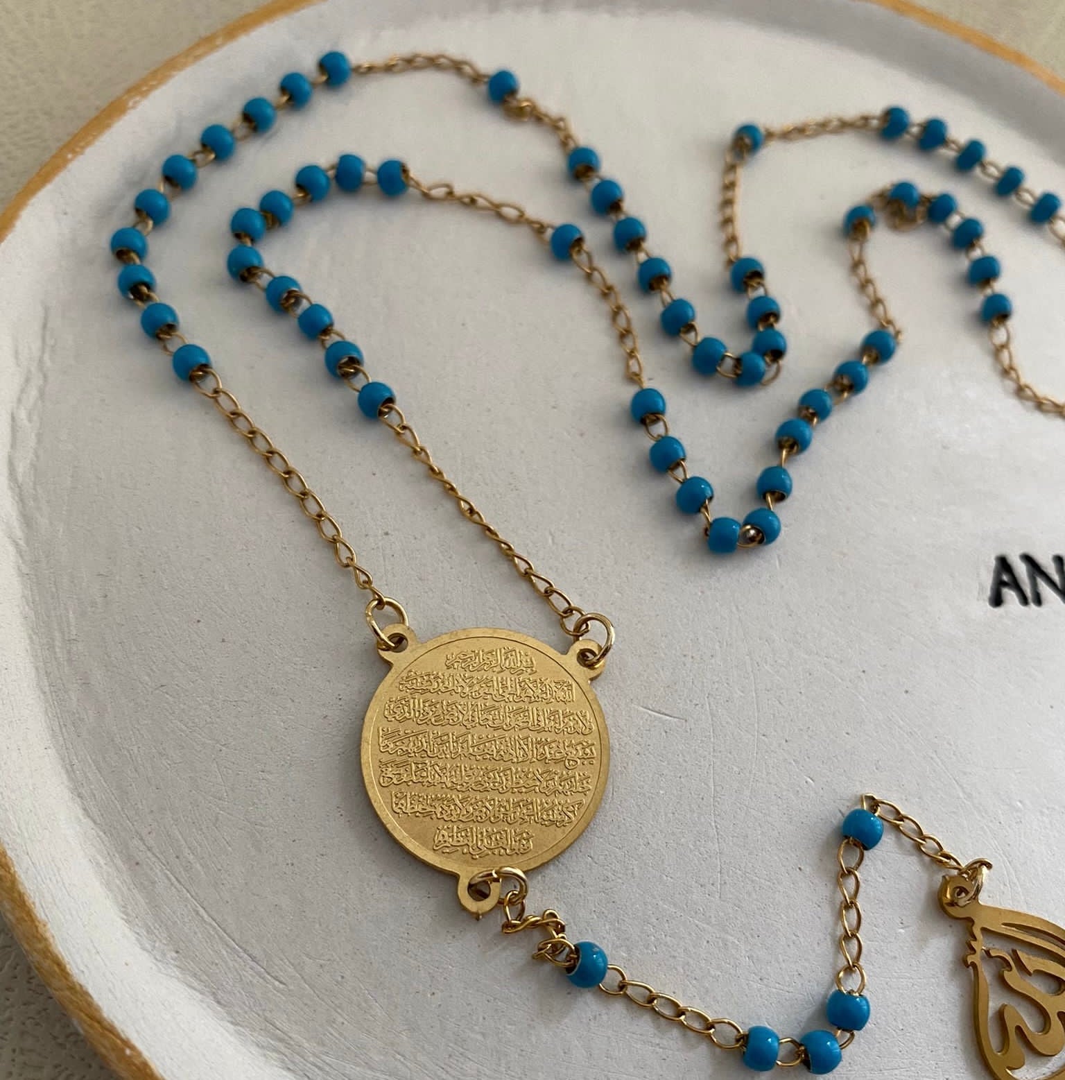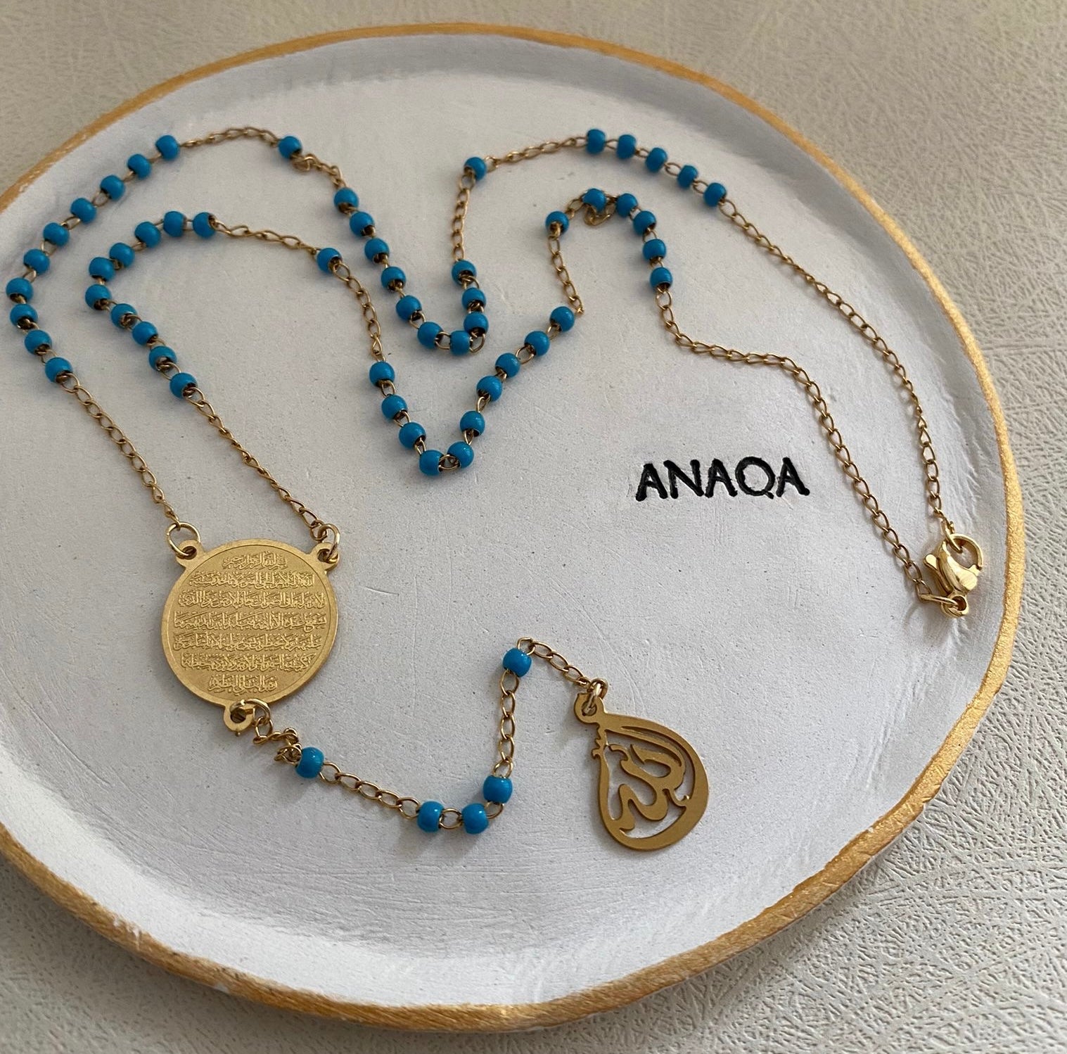 This necklace is beautifully engraved with the Ayatul Kursi verse, making it a minimal elegant jewellery piece with a powerful meaning behind its concept.