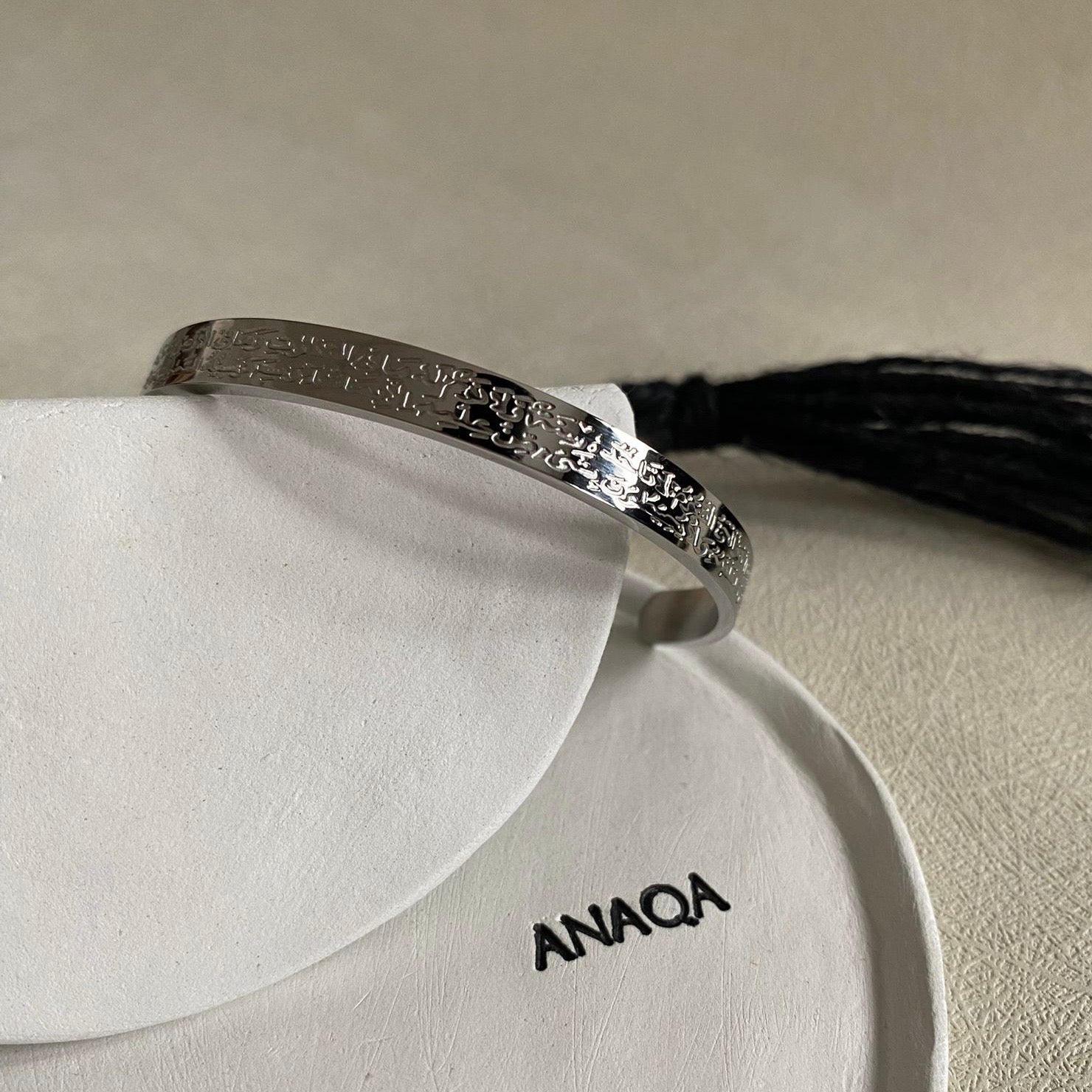 This elegant bracelet features a delicate engraving of Ayatul Kursi, beginning on the front and continuing seamlessly to the back. Designed with minimalist sophistication, it combines timeless style with deep spiritual significance.