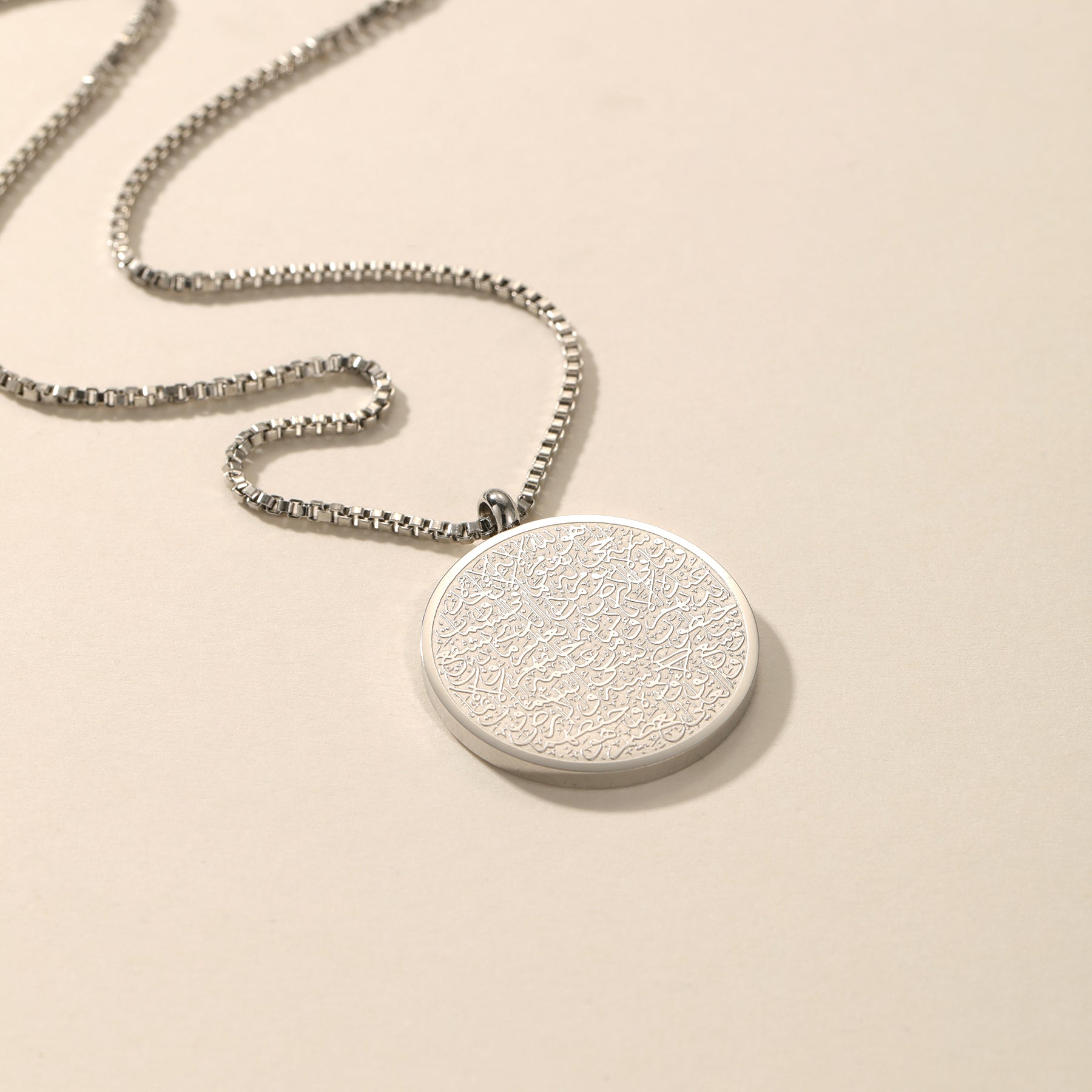 This elegant necklace features a beautifully engraved inscription of the verse, combining minimalist design with deep spiritual significance.