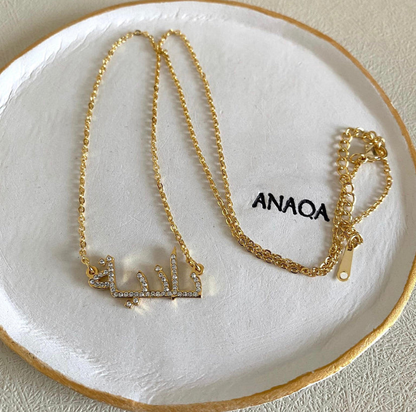 Personalised Crystal Encrusted Arabic Name Necklace | WOMEN