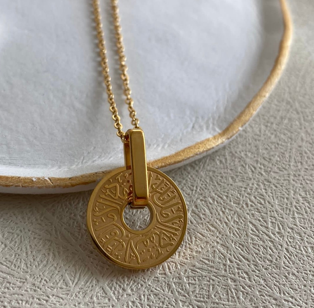 This necklace is uniquely engraved with the sentence لا تفقد الامل ابداً which literally translates to “Never Lose Hope“
