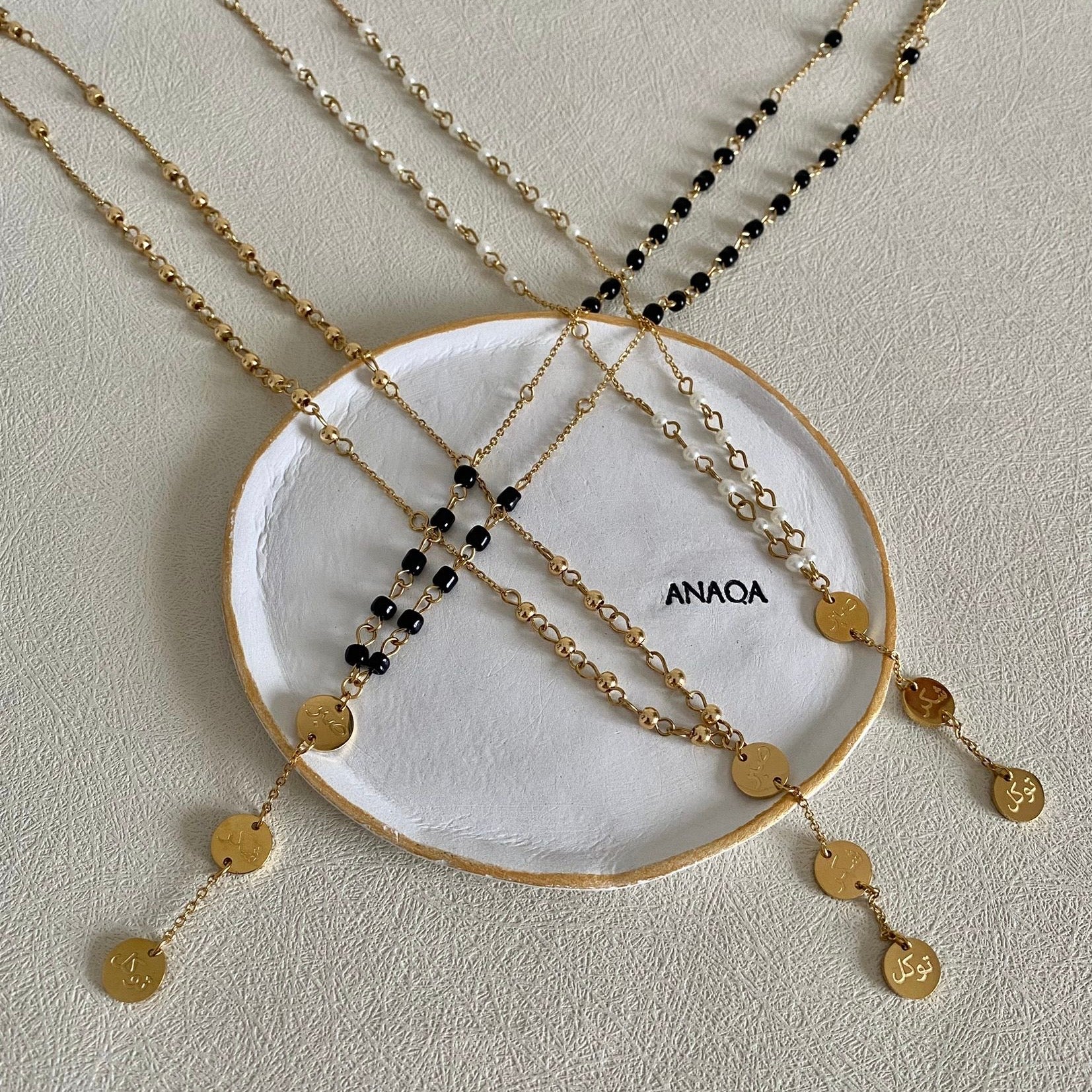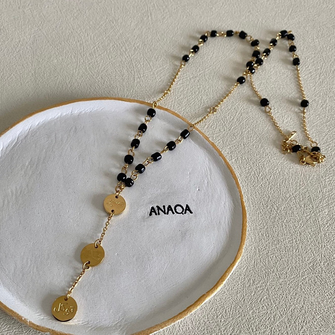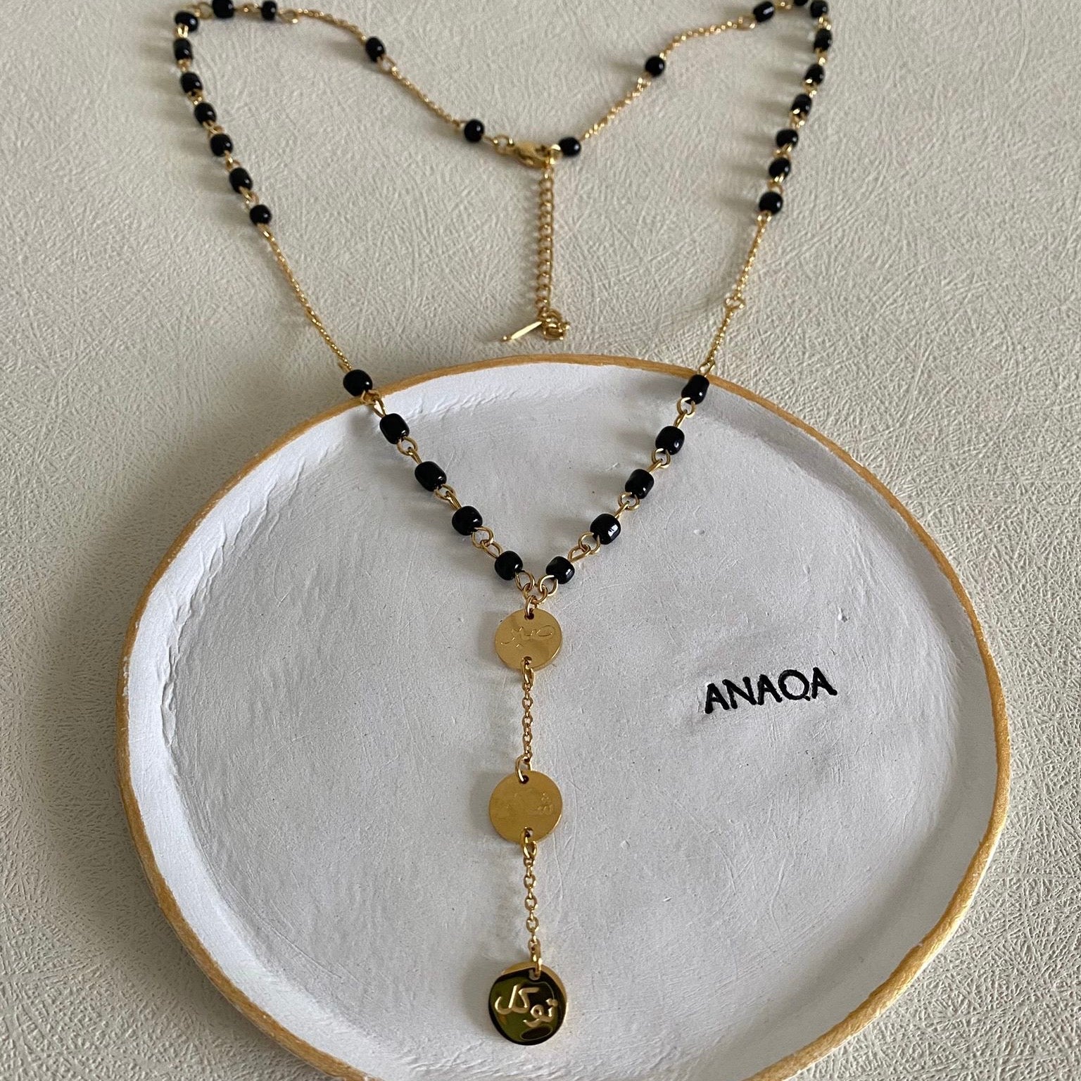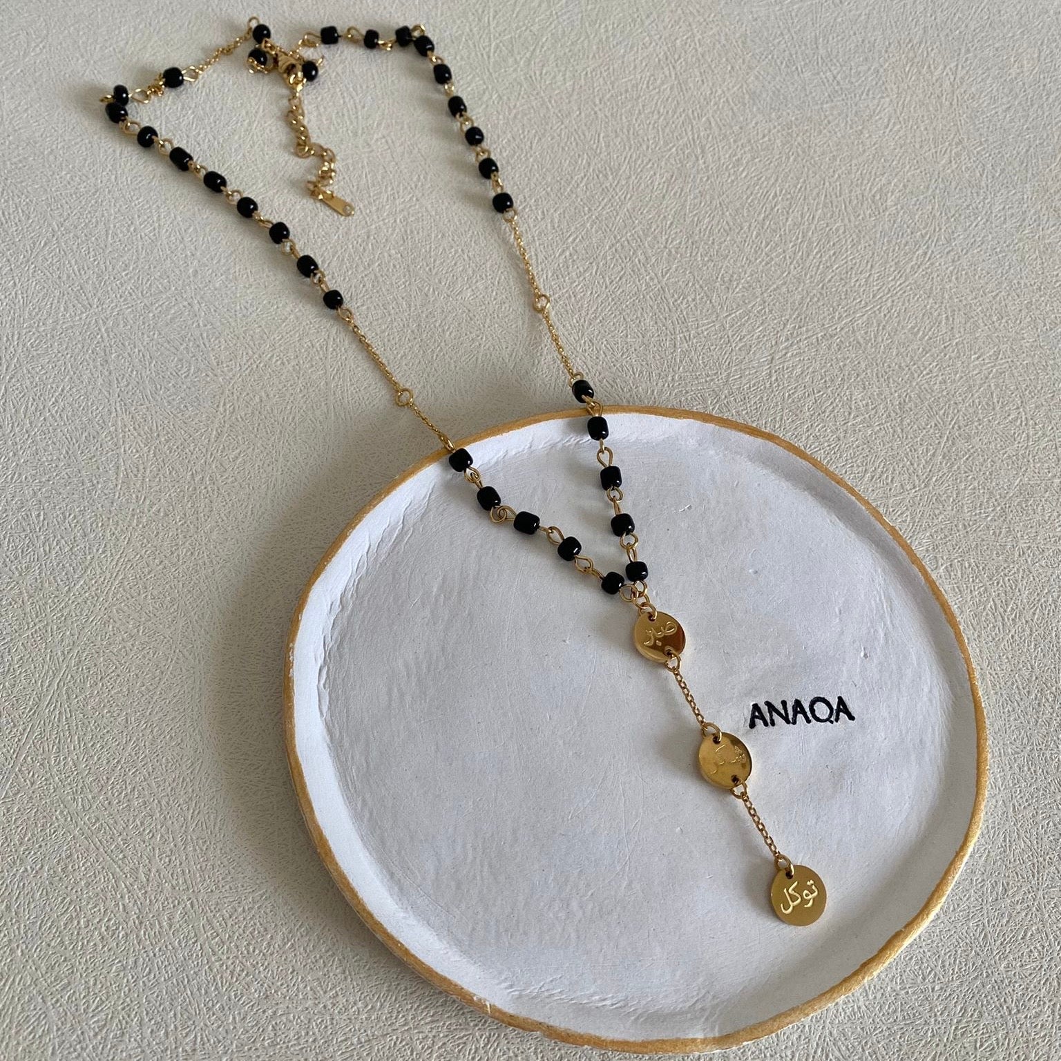 This beaded necklace is engraved with powerful and meaningful 3 Arabic words that bear huge values. These are: