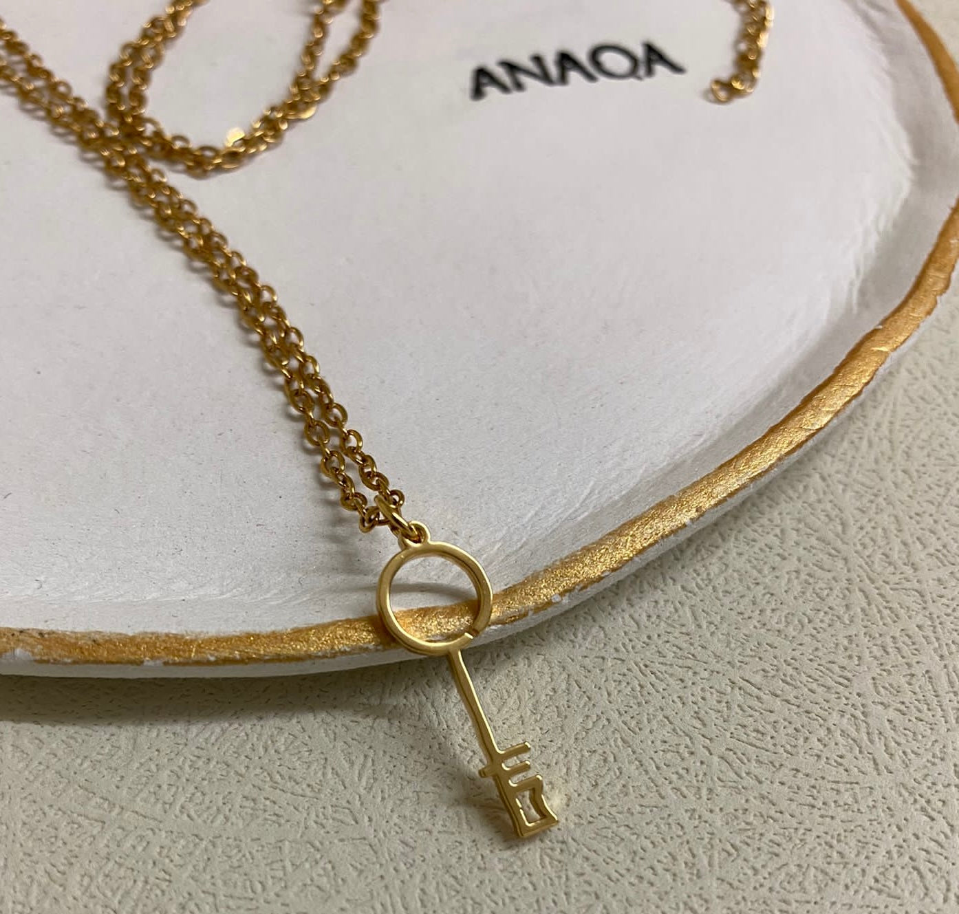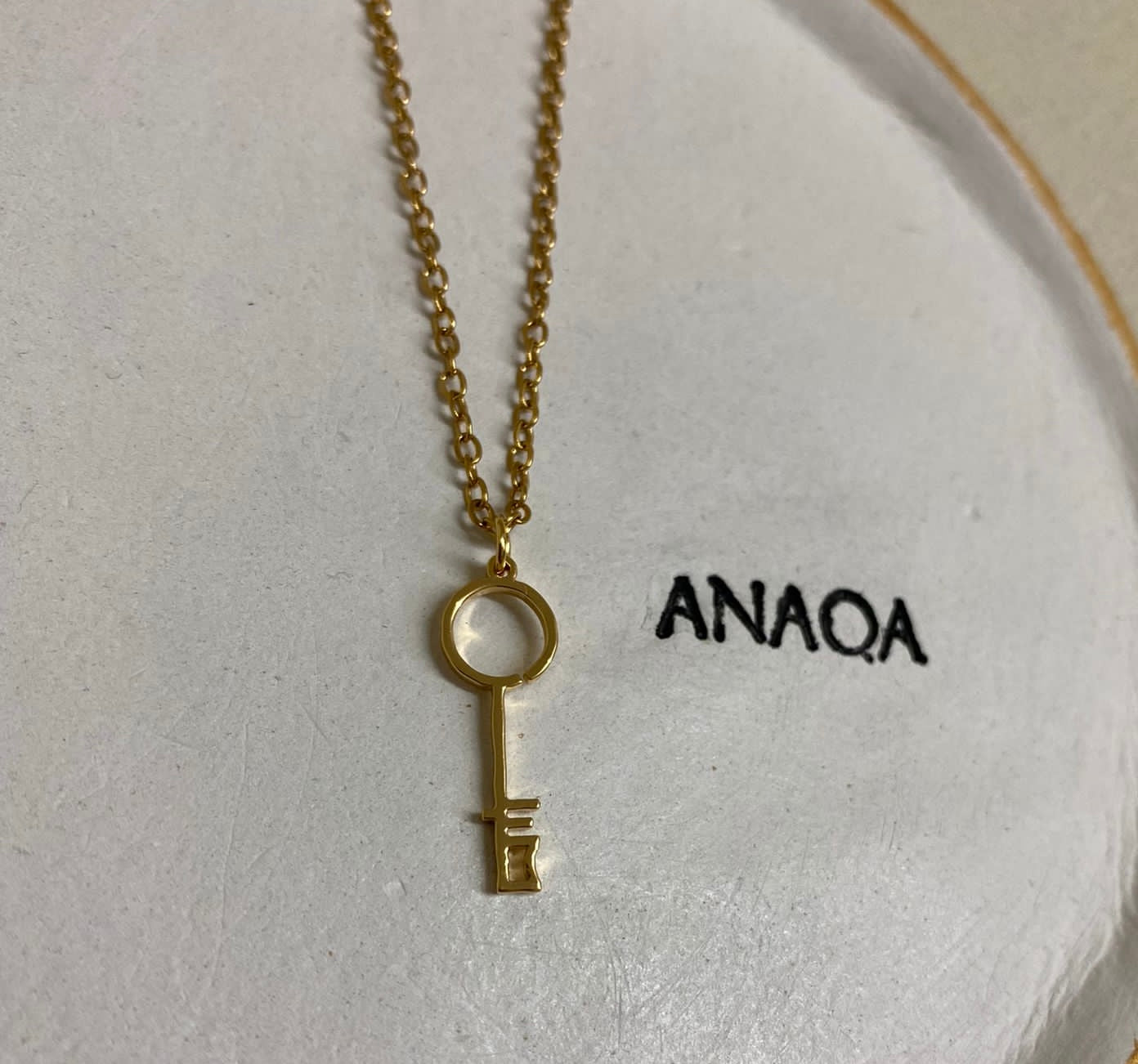 The necklace is shaped as a key to make a further statement that the key to all success is patience.