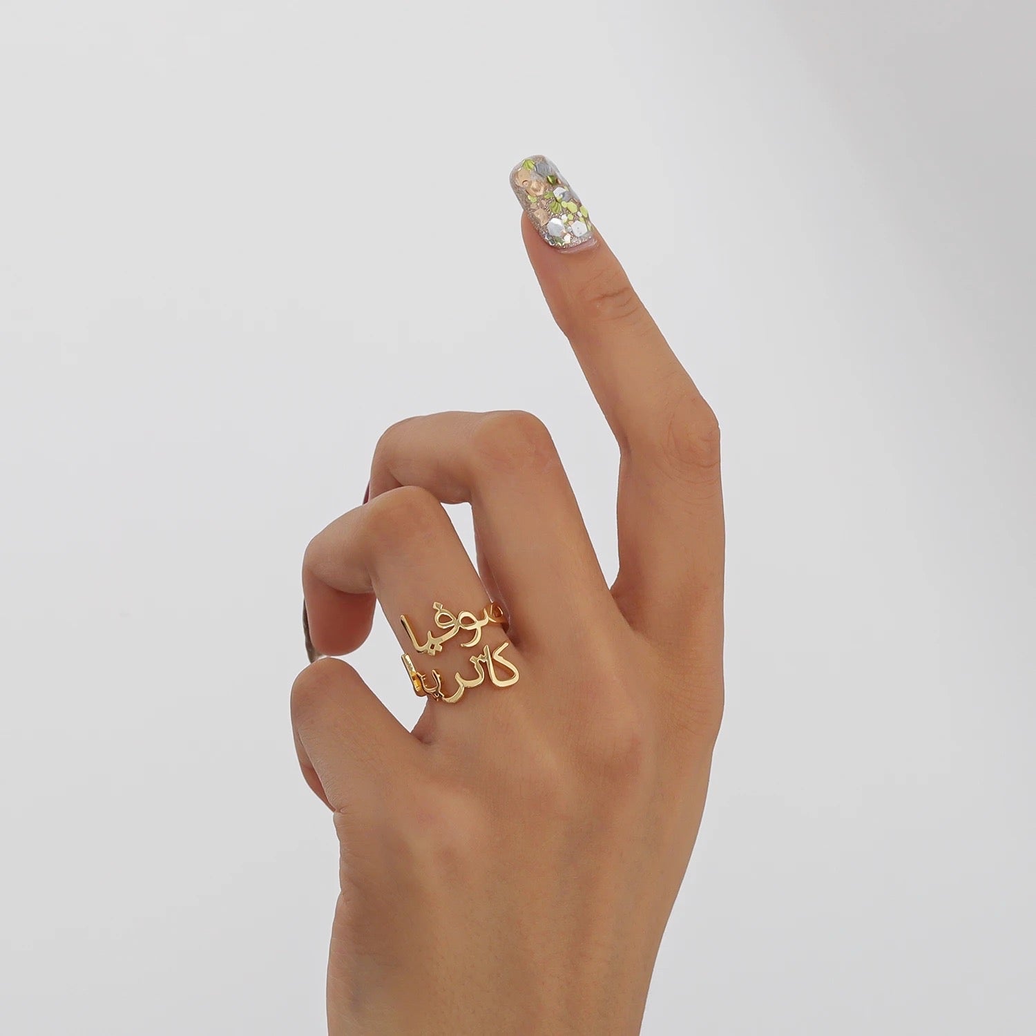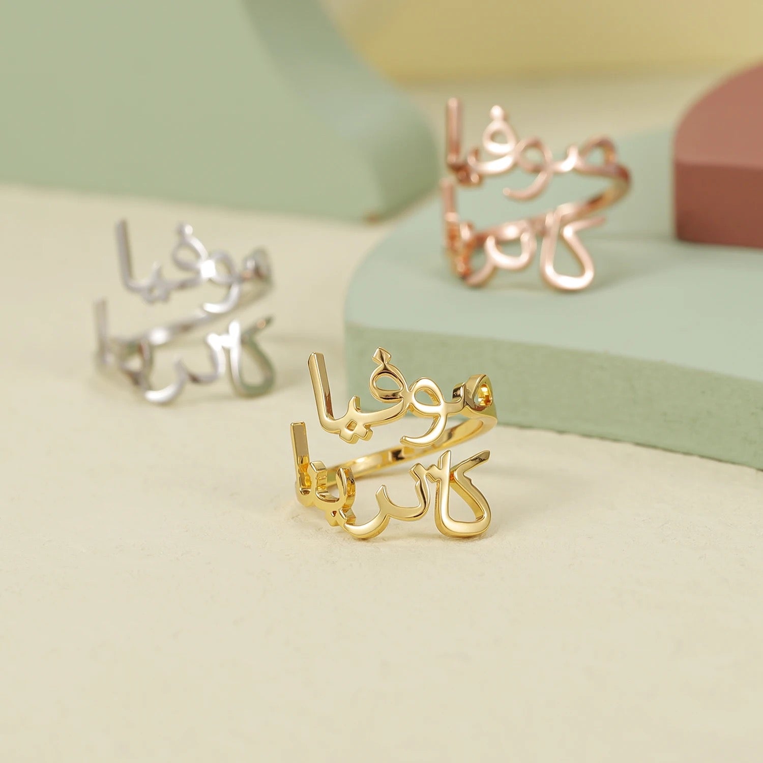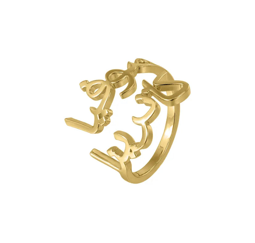 Celebrate your bond with a custom ring engraved with both your names in elegant Arabic calligraphy. A meaningful symbol of love, connection and forever. Made just for two.