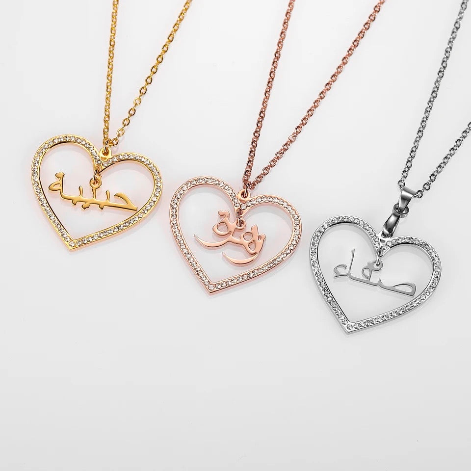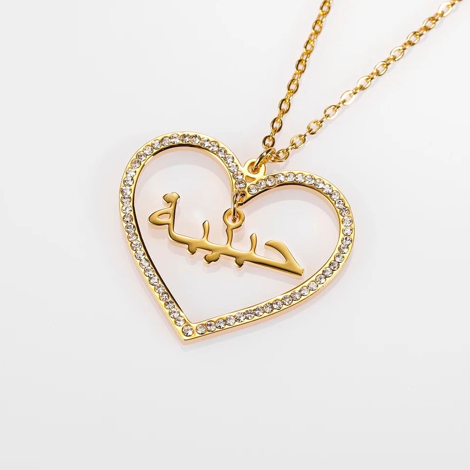 Personalised Arabic Name Crystal Heart Necklace | WOMEN