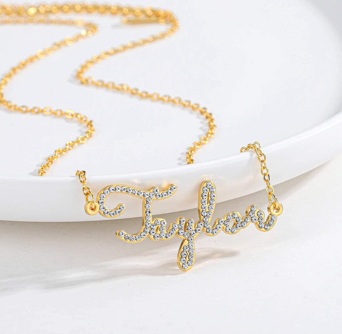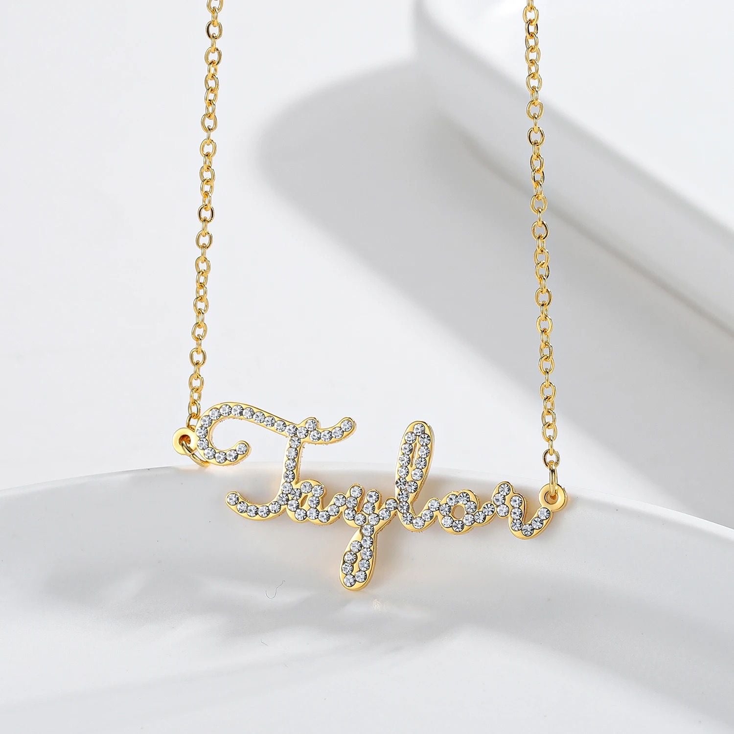 Personalised Zirconia Encrusted English Name Necklace - Volume 1 | WOMEN