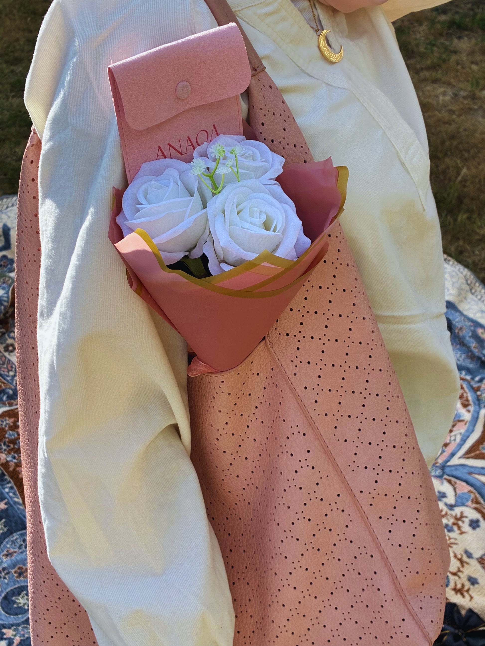 These beautifully wrapped artificial flower bouquets offer more than what meets the eye. Nestled at the top of 3 roses is a pouch holding jewellery of your choice.