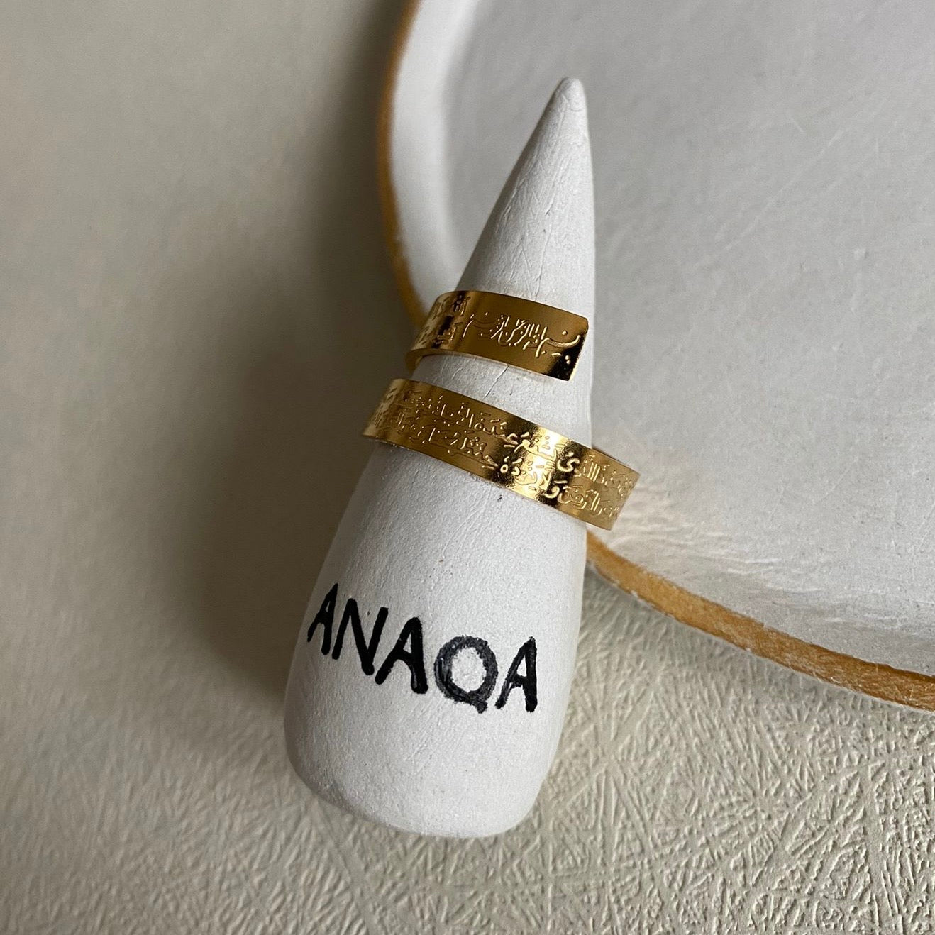 This spiral ring is beautifully engraved with the Ayatul Kursi verse, starting the engraving on the front and finishing on the back, making it a minimal elegant jewellery piece with a powerful meaning behind its concept.